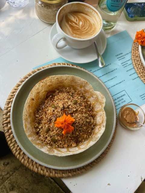 I’ve got to mention the food. It’s truly special. As we all know, I’m not really a foodie and typically eat the same thing most days (avocados on toast – I am actually an idiot and in retrospect this is very lame) so it’s safe to say my taste buds have been well and truly changed for life. We took a day trip from here to this beautiful beach called Talalla. We ate at this tiny restaurant run by a wonderful guy who told us how much Covid has affected his business, alongside the economic crisis currently gripping Sri Lanka. That’s a (very sad) conversation for a different day but let me tell you, he made us coconut and cheese rotis, and sweet baby Jesus they were absolutely phenomenal. Also worth noting that we rode on scooters to Talalla, and Faye had a little accident on the way. A tuk tuk pulled out of a side road and she crashed into it (lightly, nothing to worry about). Completely not her fault, but we weren’t really sure how it was going to play out. Luckily nothing came of it and we were able to scoot off on our merry way. Not funny at all at the time, but I don’t think I’ll ever forget hearing that thud and looking back to find she was nowhere to be seen. One of the many random things that have happened but provide such great stories on reflection. Even the three of us having diarrhoea at the same time in our shared bathroom, and Faye vomiting instantaneously after is something that has not only brought us so much closer together (perhaps even too close) but is something that actually makes me belly laugh everytime I think about it.